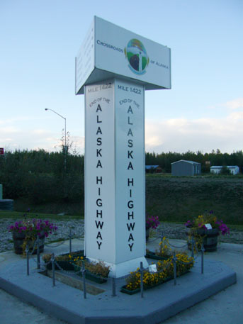 Beginn des Alaska-Highways. Von dort sah ich schon die