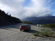 Der von jetzt ab als Schotterstraße gebaute „Alaska Highway“ führte mich entlang der
