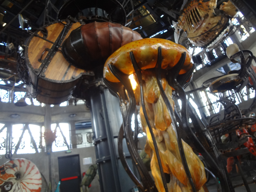 Das verrückte Karussell mit Seeungeheuern und anderen Lebewesen und der mechanische Elefant, den wir nicht nur besichtigt haben, sondern auch mit ihm durchs Gelände gefahren sind.