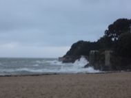 Es wurde ganz schön stürmisch und die Wellen schlugen an den Felsen hoch.