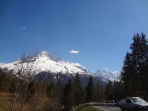 Mein Navi wollte mich natürlich auf dem kürzesten Weg nach Badenweiler bringen, denn so hatte ich es auch eingegeben, doch als ich bei einer großen Umleitung auf die Hilfe des Navis verzichten musste, kam ich über einen Bergrücken nach Albertville und sah in der Ferne in der Sonne glitzernde schneebedeckte Berge. Da beschloss ich – was ich eigentlich auch schon vorher geplant hatte – über Chamonix zu fahren, um mir zum ersten Mal im Leben den Mont Blanc, den höchsten Berg Europas, anzusehen.