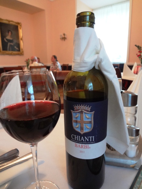Der Wein wurde vorbildlich (mit gestickter Serviette) gekühlt und als Hautspeise hatte ich