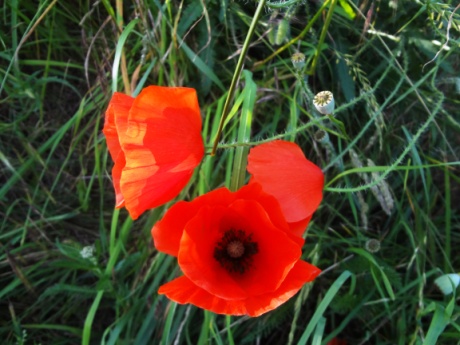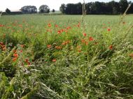 Ich sah viele Felder mit blühendem Klatschmohn.