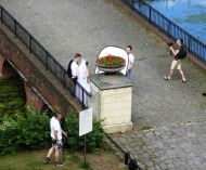 Dann zeigte sie uns das älteste Gebäude Krakaus, dessen Erdgeschoss heute zwei Meter tiefer liegt, als die heutige Marktoberfläche, denn die Leute hatten früher ihren ganzen Müll einfach auf die Straßen geworfen (kaum ein Unterschied zu heute, wie ich so bei mir dachte) und daher ist die heutige Fläche 2 m höher. Woher sie dieses Wissen wohl hat, habe ich mich bei dieser Gelegenheit nicht zum letzten Mal gefragt.