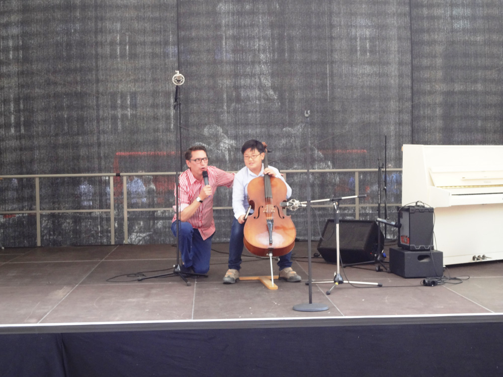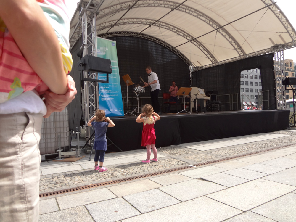 Als wir ankamen spielten gerade Kinder von Profi-Musikern auf einer kleinen Bühne vor dem Konzerthaus ihre Stücke, was alleine schon deswegen reizvoll ist, dass sie es mit großem Ernst und vollster Konzentration machten. Der Beifall des Publikums und natürlich der stolzen Eltern war Ihnen gewiss und allein die Tatsache, dass sie sich noch sehr linkisch vor dem Publikum verbeugten, als wir klatschten, zeigt doch, dass sie es nicht aus Show-Gründen machten. Es hat riesen Spaß gemacht.