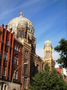 So schlenderte ich noch etwas weiter die Friedrichstraße gen Norden bis zur Kreuzung Oranienburger Straße und bog in diese hinein. Vor mir sah ich schon die goldene Kuppel der neuen Synagoge und den Fernsehturm.