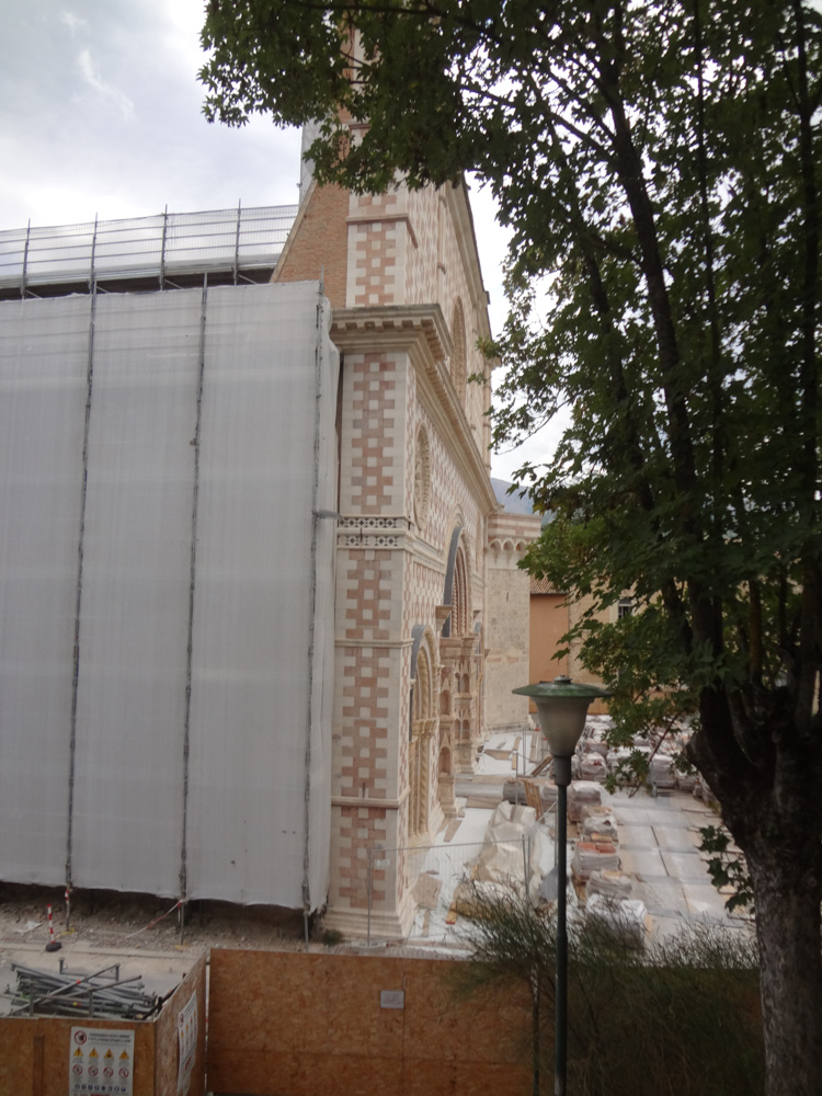 Das war schon erschütternd: Überall sind immer noch einsturzgefährdete bzw. bereits eingestürzte Häuser zu sehen. 20160805-501 20160805-502  Insbesondere die  wunderbare Kirche Santa Maria di Collemaggio, die ich schon auf meiner 1. Italien-Reise 2005 (von der leider alle Fotos „verschüttgegangen“ sind) bewundert hatte, ist immer noch nicht wieder hergestellt, doch es wird fleißig renoviert. 20160805-503 20160805-504 20160805-505