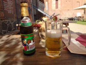 20160729-109 Irgendwann erreichte ich schließlich mit Hilfe meines Navis mein heutiges Etappenziel in Legnagno nordwestlich von Mailand, wo ich im Agriturismo „Tre Rondini“ (Drei Schwalben) mit diesem herrlichen Logo 20160729-117 übernachtet habe.20160729-109 20160729-107 Es war ein riesiges landwirtschaftliches Anwesen, wobei die Zimmer einige hundert Meter vom Restaurant entfernt waren, so dass ich eine kleine Wanderung zum Abendessen machen durfte. 20160729-112 20160729-116 20160729-119 Nach meinem obligatorischen Bier zum Durstlöschen hatte ich das Gefühl, dass ich wohl der einzige Hotelgast war, denn auch im Restaurant waren außer mir nur noch drei – offensichtlich einheimische – Gäste vorhanden.20160729-120 20160729-122 20160729-124 20160729-121 Zu meinem Abendessen gönnte ich mir  eine Flasche Rotwein (wie sich das so gehört!)