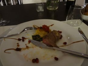 20160730-149 Mein Amuse Gueule aus sechs verschiedenen Sachen, von denen ich nicht herausschmecken konnte, was es war, da ich auch die Erläuterungen des Kellners nicht verstanden hatte. 20160730-151 Und das war mein Hauptgericht: Entenbrust. (Das Foto habe ich dann bei Facebook gepostet und einige sehr „nette“ Kommentare bekommen.