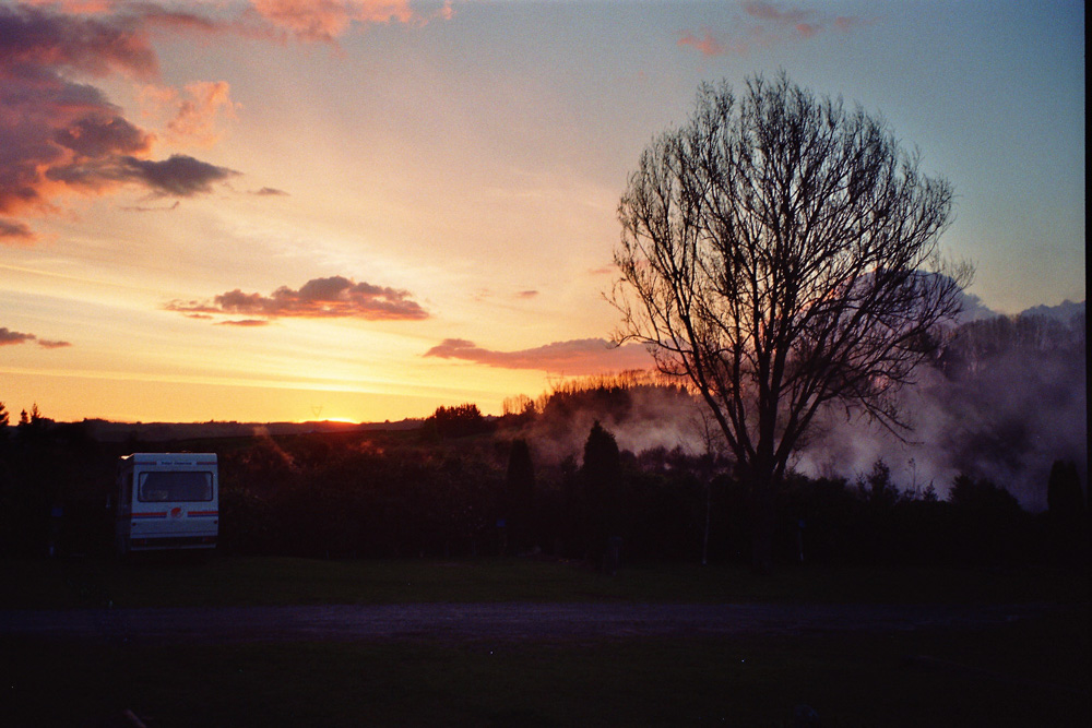 Bevor die Sonne jetzt untergeht wollte ich mir noch etwas zu Essen machen. A pro Pos Essen: ich habe heute kurz eine Lachsfarm besucht und dort für 4 $ ein Sandwich mit geräuchertem Lachs gekauft: köstlich. Außerdem kostet dort eine Banane und ein Apfel jeweils nur 50 Cent, d. h. weniger als 45 Pfennige! Es ist schon billig, hier in Neuseeland zu leben.