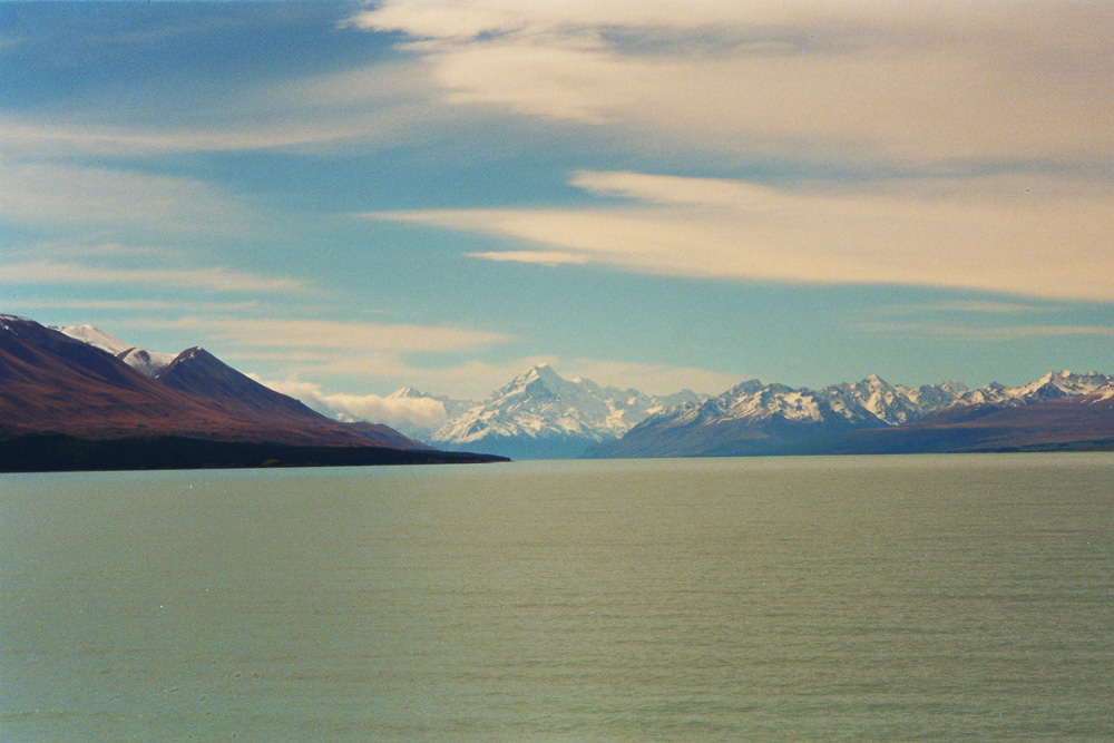 Hinter Twizel kommt der größte Koch der Welt, der Mount Cook, so richtig zum Vorschein. Er beherrscht wirklich die ganze Bergkette und wenn man dann zum Mount Cook Lookaut kommt, wo ein künstlich aufgestauter See davorliegt, kommt man aus dem Staunen nicht mehr heraus. Das türkisfarbene Wasser vor den weißen Bergen mit dem blauweißen Himmel, das ist schon schön und ergreifend.