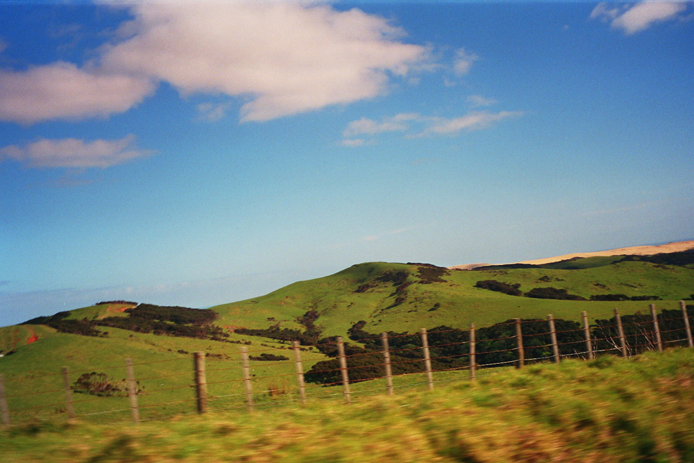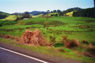 Beinahe hätte ich die Abfahrt nach Mangawhai Head verpasst, da ich immer auf der 1 fuhr. So bin ich denn in Kaiwaka abgebogen und durch wieder andere, doch ebenfalls sehr schöne Landschaft ohne Wälder gekommen, so dass man herrliche Ausblicke hatte.