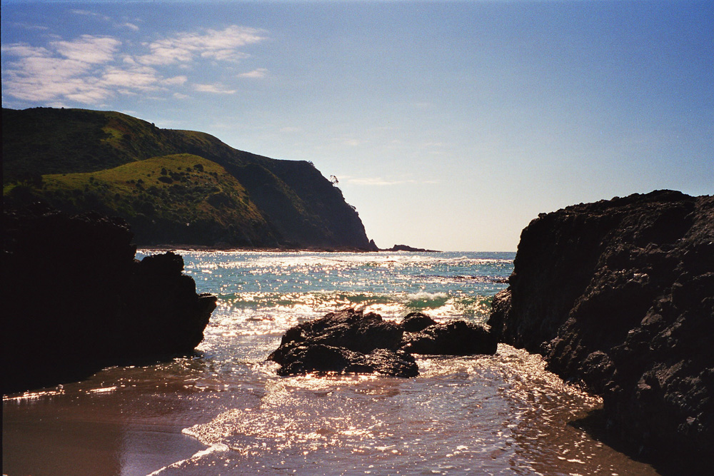 Von rechts kommt der Pazifik und von links die Tasmansee.
