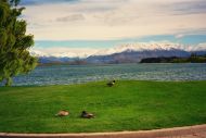 Unmittelbar vor Lake Hawea sah ich einen offensichtlich sehr schön am See gelegenen Campingplatz, zu dem ich zurückgefahren bin, nachdem ich eingekauft hatte. Es war wirklich so schön, wie ich es mir vorgestellt habe. Ich konnte mir einen Platz – für 9 $ – aussuchen und nahm natürlich den schönsten mit Seeblick, der noch eine Steckdose in der Nähe hatte.